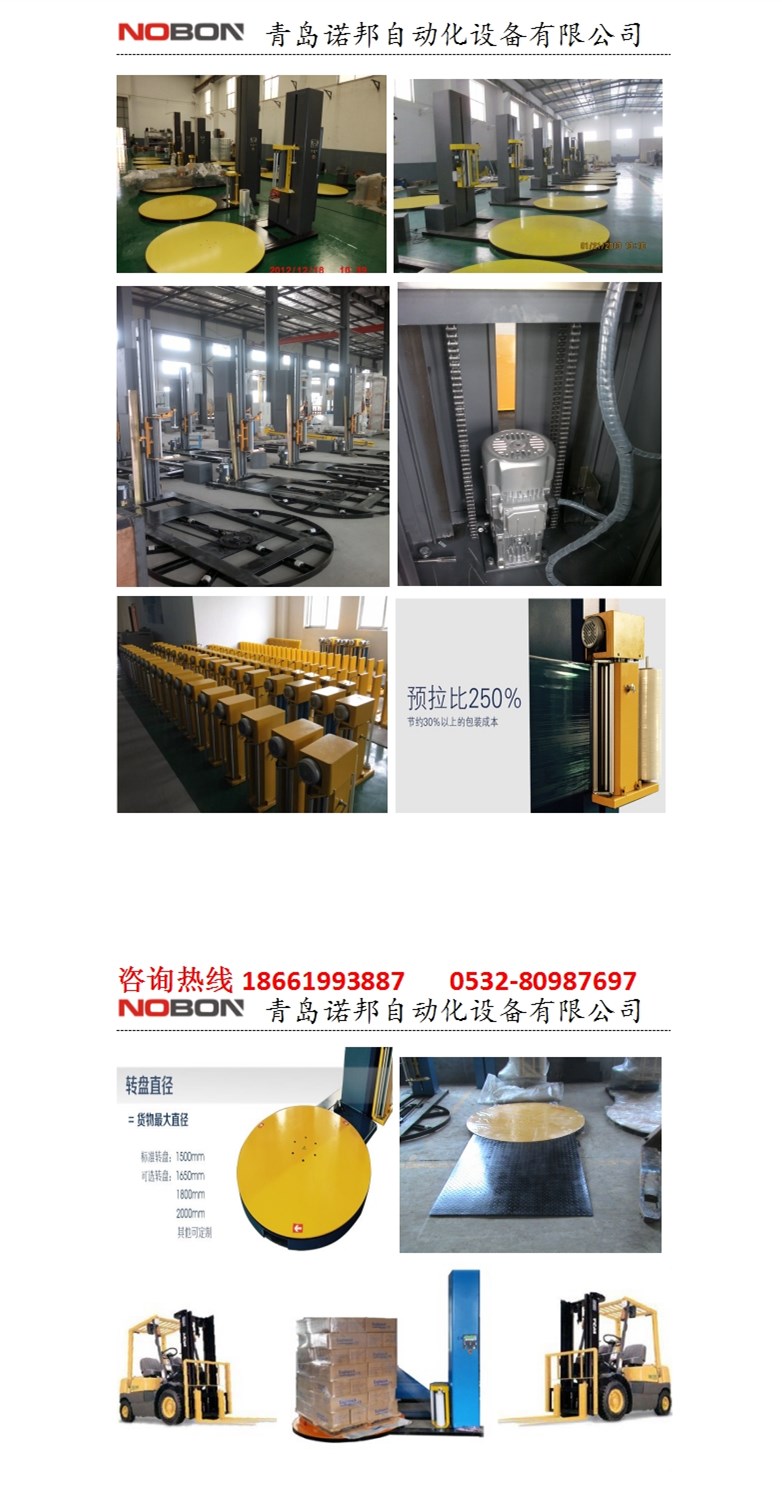 | 控制系統 | PLC控制,纏繞層數、次數可調,轉臺自動復位,自動感測貨物高度 |