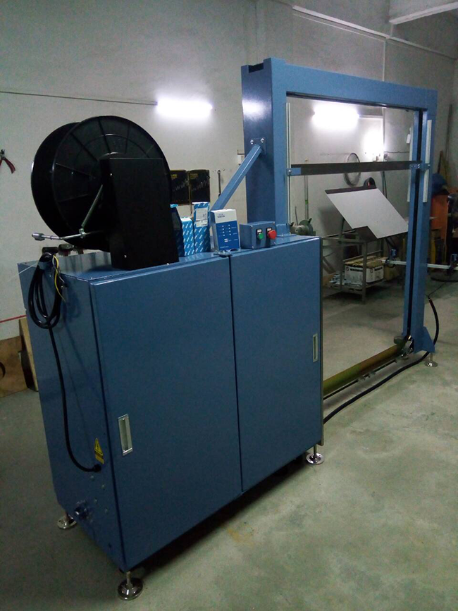 本針對棧板捆包而設計的機種,開放式弓架活動的穿帶能將棧板與捆包物牢固地捆包在一起,便于移動及運輸。