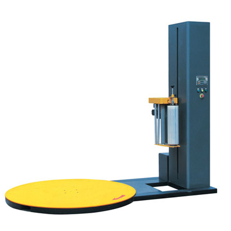 第一種纏繞機簡易型人工控制纏繞過程。包裝速度低。卷輥滑架速度、轉盤/旋臂轉速、卷繞為大小不能調整。由人工操作控制薄膜的裹膜的重疊量、翻邊量、纏繞層數和貨物裹膜高度。不能與生產線連接。