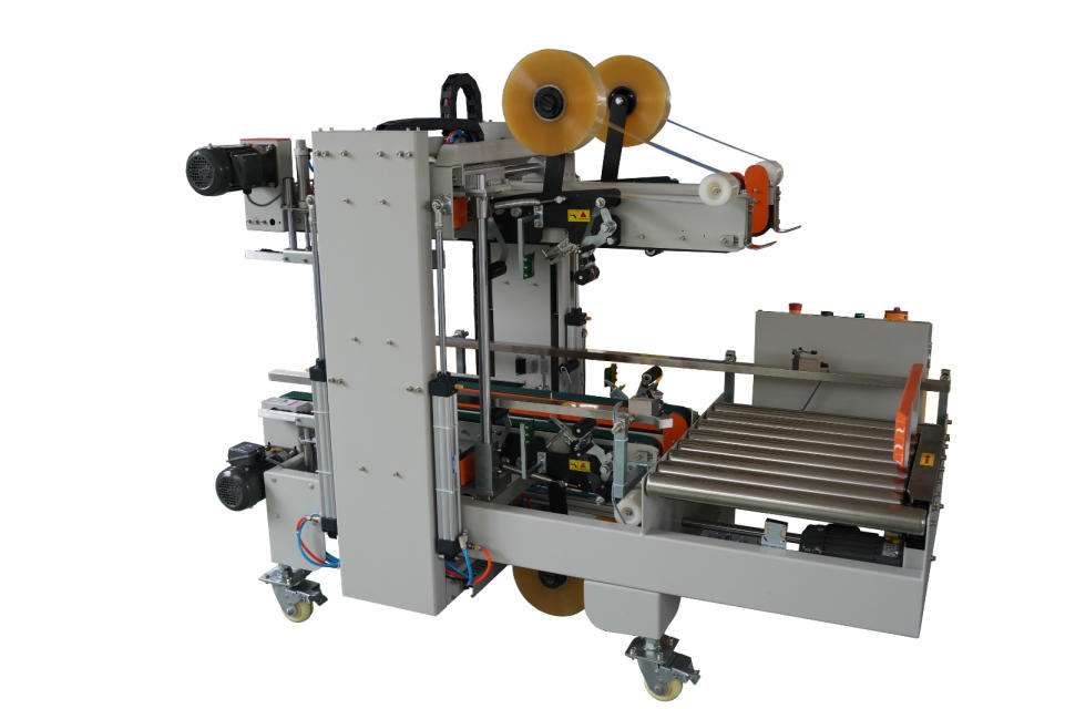 封箱機主要適用于紙箱的封箱包裝,既可單機作業(yè),也可與流水線配套使用,廣泛應(yīng)用在家用電器、紡織、食品、百貨、醫(yī)藥、化工等行業(yè)。封箱機采用膠帶對紙箱封口,經(jīng)濟快速、容易調(diào)整,可一次完成上、下自動封箱動作,如采用印字膠帶,更可提高產(chǎn)品形象。